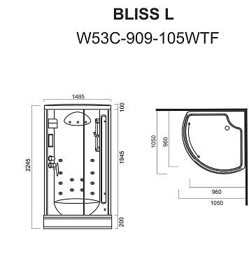 Гидромассажная кабина с паром 3/4, 96(105)х96(105) см Кабина Bliss L поможет получить максимальное удовольствие — она оснащена водопадом, хромотерапией, пультом управления с LED дисплеем и системой Touch Screen Приверженцы легкости и непосредственности испытают наслаждение от использования сенсорной системы контроля Easy Pad.