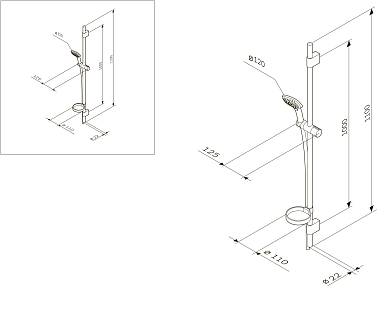 Комплектация Регулируемые по высоте держатели душевой штанги Хромированная мыльница Ø110 мм