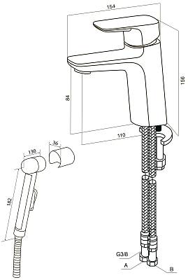 Am.Pm Spirit F7003000 смеситель для умывальника с гиг. душем, хром Комплектация Гигиенический душ с настенным держателем и гибким шлангом: да ...