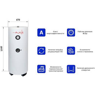 Водонагреватель косвенного нагрева AXIS THERM X 100 литров со встроенным теплообменником из нержавеющей стали и возможностью дополнительной установки электрического нагревательного элемента является универсальным оборудованием для загородного дома или коттеджа.