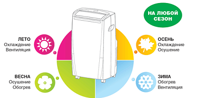 Кондиционер универсален в использовании, способен работать не только на охлаждение (основная функция), но и на обогрев.