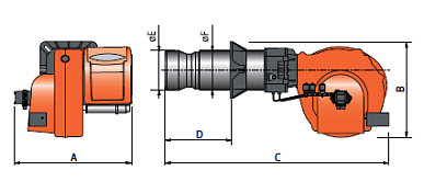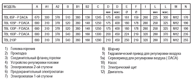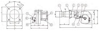 - горелка оснащена 4-штырьковым и 7-штырьковым разъемами, фланцем и изоляционной прокладкой для крепления к котлу, двумя шлангами и двумя форсунками.