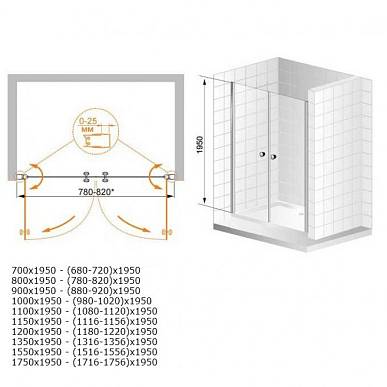 Cezares Elena B2 (120 см) Душевая дверь, прозрачное стекло Дверь в проем. Тип дверей: две распашные створки. Стекло: 6 мм, прозрачное или текстурное Punto. Исполнение: хром. Поддон: А, АН или барьер тип В. Поддон и барьер приобретаются отдельно. Особенности: Улучшенная герметичность за счёт петли с функцией подъема двери Увеличенная высота Белый магнитный уплотнитель дверей Цилиндрическая конструкция петли позволяет открывать двери на 180 градусов.