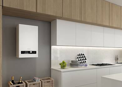 Eon в своем комбинированном исполнении (со встроенным проточным теплообменником для приготовления горячей воды) может похвастаться высоким комфортом приготовления горячей воды, даже без подключения емкостного водонагревателя. При этом экономится дополнительное пространство. Так, котел на 24 кВт способен обеспечить до 11,5 л/мин горячей воды, модель на 28 кВт — до 12 л/мин при нагреве на 30°С.