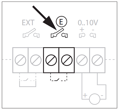 — контакт для подключения внешней системы управления или внешних датчиков