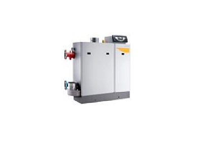 – Литой секционный теплообменник из сплава алюминия с кремнием с большой поверхностью теплообмена и низким гидравлическим сопротивлением обладает высокой устойчивостью к коррозии, а также обеспечивает функцию самоочистки. Для него не требуется минимального протока воды (кроме случаев работы с температурой > 75 °C), потому что система регулирования управляет не только работой горелки, но также и переходными состояниями отопительной установки, которые являются причиной низкого или даже отсутствующего расхода воды через котёл;