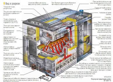– Напольный чугунный котел большой мощности, с топкой под давлением
