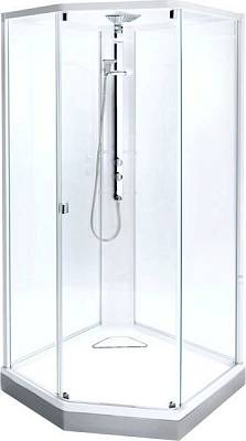 Широкий дверной проем и удобная форма поддона позволяют оптимально использовать пространство. Высоту ручного душа можно регулировать, а верхний душ оснащён функцией "тропического дождя". Кабина подойдет для людей высокого роста.