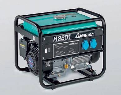 Eisemann H 2801 имеет указатель уровня топлива в баке, воздушное охлаждение, 2 выходные защищенные розетки с заземлением на 16 А, 2-полюсный защитный автомат с тепловым и электромагнитным расцепителями, счетчик моточасов (не устанавливается совместно с UBC). Степень защиты IP 45. Продолжительность работы H 2801 на одной заправке с нагрузкой 3/4 от максимальной 9,5 ч.