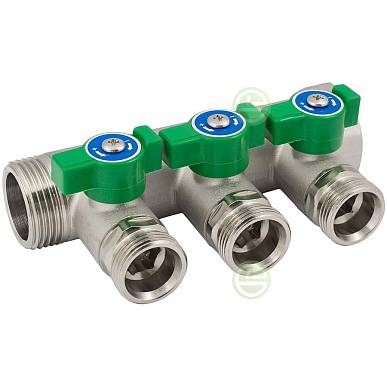 Корпус коллектора изготавливается из пищевой латуни марки CW617N-M (EN 12165). Коллектор оснащен регулировачными вентилями. Колпачки оснащены маркерами с указанием приборов-потребителей, а также сине-красные метки для указания холодной или горячей воды.