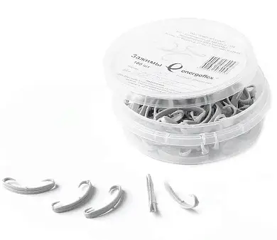 Зажимы Energoflex® (100 шт.) Пластиковые зажимы Energoflex® используются для временного сжатия изоляции Energoflex® после склеивания. Примерный расход: 3 шт. на 1 погонный м изоляции. Количество в упаковке: 100 шт. Примечание: Зажимы допускается применять только в системах отопления и горячего водоснабжения.