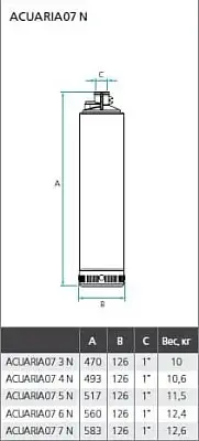 Устройство представляет собой моноблочный многоступенчатый центробежный насос с вертикальным напорным патрубком с внутренней резьбой.