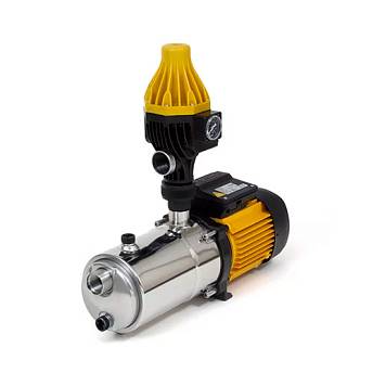 Конструкция оборудования представляет бесшумный многоступенчатый центробежный насос с горизонтальным всасывающим и вертикальным напорным патрубками с внутренней резьбой. Рабочие колеса смонтированы непосредственно на вал мотора. Самовсасывающие подшипники снимают напряжение с вала и обеспечивают бесшумную работу. Сочетание износостойких материалов, обладающих малым коэффициентом трения, гарантирует герметичность торцевого уплотнения вала и позволяет использовать насос без обслуживания. Мотор переменного тока с наружным охлаждением за счет вентилятора. Однофазное исполнение со встроенной тепловой защитой с автоматическим перезапуском и конденсатором.