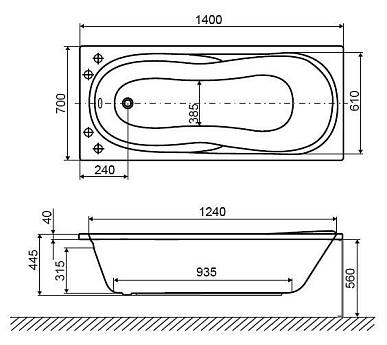 Excellent ELEGANCE 140 акриловая ванна 1400x700 WAEX.ELE14WH