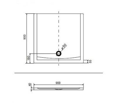 Технические характеристики и описание поддона: - квадратный акриловый душевой поддон - отверстие под сифон ø90 мм Дополнительные опции: - сифон