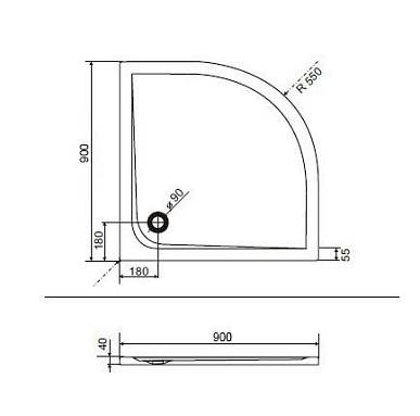 Технические характеристики и описание поддона: - полукруглый акриловый душевой поддон - отверстие под сифон ø90 мм Дополнительные опции: - сифон