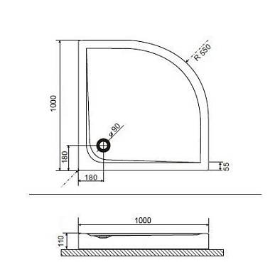 Технические характеристики и описание поддона: - полукруглый акриловый душевой поддон - монтажные ножки - отверстие под сифон ø90 мм Дополнительные опции: - сифон
