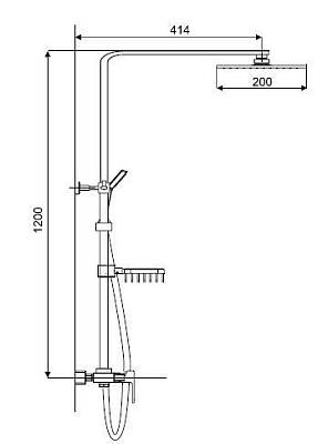 Excellent SQUARE RAIN душевая стойка без излива - душевая стойка с однорычажным смесителем для душа. - верхний душ 200х200 мм - регулируемая по высоте стойка до1200 мм - шланг силиконовый Silver 1500 мм - мыльница латунная