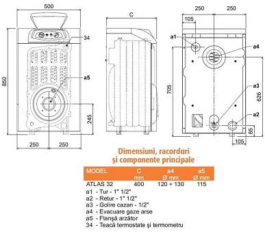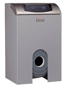 Особенности конструкции напольного газового котла Ferroli Atlas 95 под наддувную горелку ( газ / дизель ) :