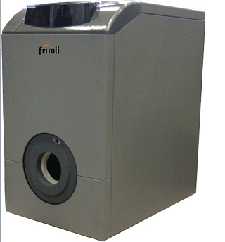 Особенности конструкции напольного газового котла Ferroli Atlas D 30 под наддувную горелку ( газ / дизель ) :