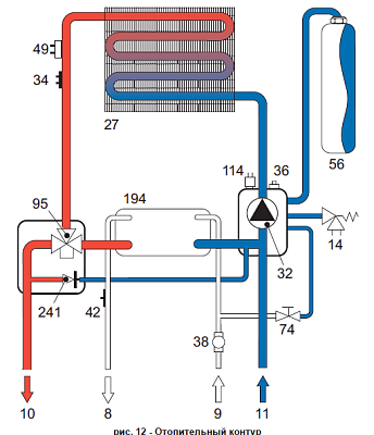 обводной контур "by-pass" в контуре отопления, защищающий и котел и систему от гидроударов;