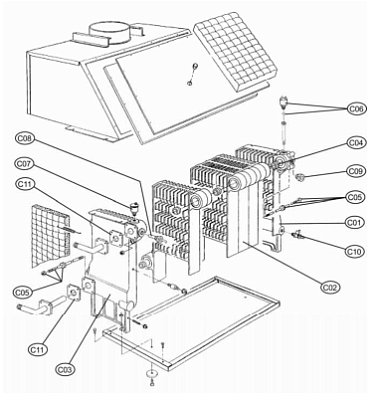 чугунный теплообменник, изолированный слоем минеральной ваты, экранированной алюминиевый фольгой