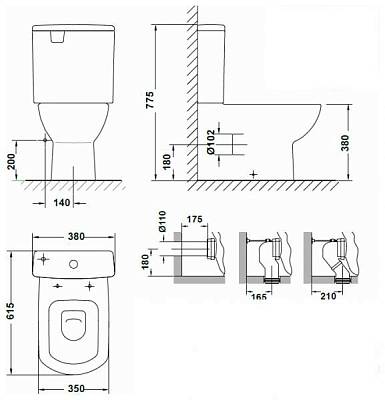 ПодробнееGala SMART бачок с крышкой, двойным механизмом слива. Задний правый подвод воды