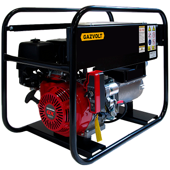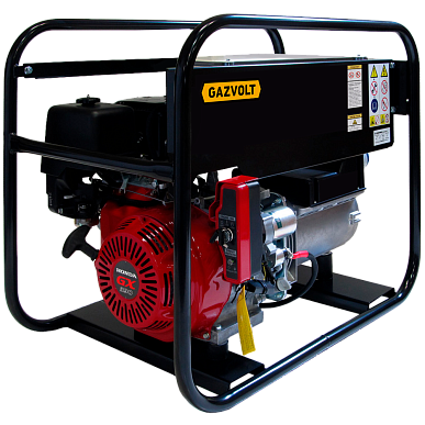 Краткое описание Gazvolt Pro 6250 A 07 Газовый генератор (на раме) Однофазный генератор Gazvolt Pro 6250 A на раме имеет номинальную мощность 5/4,5 кВт (LPG/NG) и предназначен для установки в подготовленном помещении. Размеры устройства 695x550x500, вес 75 кг. - Назначение данной модели – работа в качестве резервного источника электроснабжения. Агрегат оснащён надёжным двигателем Honda GX390, 389 см. куб., 13 л.с. с принудительным воздушным охлаждением. - Генераторы G...