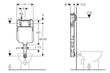 Двойной смыв со смывной клавишей Sigma50, Sigma20, Samba или Bolero Одинарный смыв со смывной клавишей Sigma10 Смыв/стоп со смывными клавишами Rumba, Mambo или Tango Бачок скрытого монтажа, полностью герметизированный от попадания конденсата Бачок скрытого монтажа для установки и ремонта без применения инструментов Регулируемый объем смыва Водопроводное соединение сверху, сбоку смещено влево Объем воды для смыва, заводская установка 6 / 3 л Малый объем воды для смыва, диапазо...