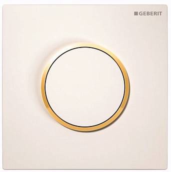 Клавиша Geberit Sigma10 ( Сигма 10 ) 115.758.KK.1рамка и кнопка: белые, обод: позолота, одинарный смыв, 246*164 мм. Применение: Одинарный смыв Для фронтальной установки Для бачка и монтажного элемента UP320, UP700, UP300 Технические данные: Усилие привода: < 20 Н Материал корпуса: пластик Объем поставки: Монтажная рамка Толкатель привода смыва Держатели крепления рамки