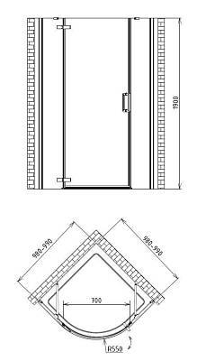 • радиальный душевой уголок