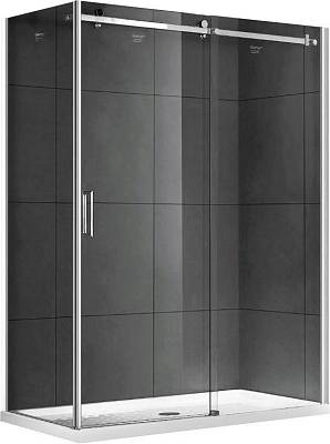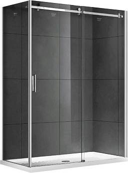 Технические характеристики и описание: прямоугольный душевой уголок одна раздвижная дверь прозрачное закаленное стекло, 8 мм профиль: полированный хром магнитный уплотнитель металлическая ручка массивные ролики из нержавеющей стали поддон приобретается отдельно
