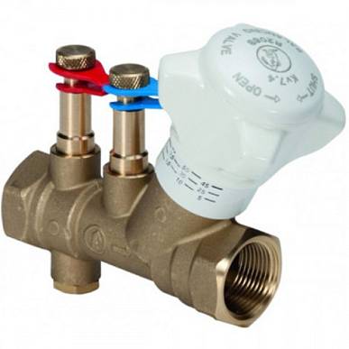 Ручной балансировочный клапан с фиксированным проходом (основан на принципе Вентури). Латунный корпус с внутренней - внутренней резьбой и сливом. Рукоятка из пластика ABS с нанесенным значением KV устройства Вентури. Возможность регулировки с блокировкой установленной настройки (механическая память). Доступны в модификациях с штуцерами для измерения дифференциального давления, или без них.