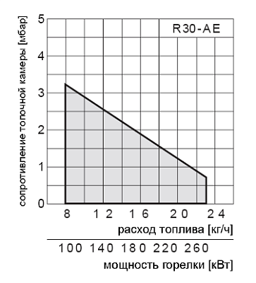Горелочные устройства серии R оснащены современной воздуходувной техникой. Высокий напор воздуха обеспечивает стабильный, безопасный пуск и низкий показатель содержания сажи. Точное смесительное устройство обеспечивает оптимальное смешивание воздуха и топлива. Особенностью является также единственная в своём роде двойная система регулировки воздуха. В одноступенчатом исполнении горелки количество воздуха и напор устанавливаются при помощи только одного винта. В двухступенчатом исполнении количество подаваемого воздуха для сгорания устанавливается на электрическом сервоприводе бесступенчатой воздушной заслонки отдельно для обеих ступеней мощности.