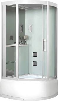 <p>Душевая кабина Grossman GR-144<br /></p><p>Размер: 100*100*215 см<br /></p><p><br /></p><p>Высокий акриловый поддон - высота 41 см, каркас поддона изготовлен из прочной нержавеющей стали.<br /></p><p>Душевая кабина Grossman GR-144 - в белом цвете, прозрачное стекло.<br /></p><p>У поддона имеется высокий бортик, что препятствует переливу воды и подтекам в ванной комнате.<br /></p><p>Антискользящее покрытие - рифление на дне.<br /></p><p>Сенсорный пульт управления - нового поколения, надежный и долговечный, отлично работает при любой температуре (радио, освещение, принудительная вытяжка).<br /></p><p>5 мм - закаленные стекла имеют максимальную систему защиты от порезов.<br /></p><p>Расдвижная дверь на роликах.<br /></p><p>Дренажная система в комплекте: сифон и сливная гофра.<br /></p><p>Верхний душ (тропический душ) - со встроенным светом установлен в крыше<br /></p><p>Ручной душ с гибким шлангом.<br /></p><p>2 - гидромассажные, горизонтальные форсунки<br /></p><p>2 - полочки<br /></p><p>Объемное зеркало на задней стенке.</p>