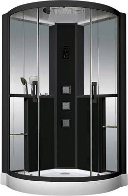<p>Душевая кабина Grossman GR-242<br /></p><p>Размер: 120*120*215 см<br /></p><p><br /></p><p>Низкий акриловый поддон - высота 15 см, каркас поддона изготовлен из прочной нержавеющей стали.<br /></p><p>Душевая кабина Grossman GR-242 - в черном цвете, прозрачное стекло.<br /></p><p>У поддона имеется высокий бортик, что препятствует переливу воды и подтекам в ванной комнате.<br /></p><p>Антискользящее покрытие - рифление на дне.<br /></p><p>Сенсорный пульт управления - нового поколения, надежный и долговечный, отлично работает при любой температуре (радио, освещение, принудительная вытяжка).<br /></p><p>5 мм - закаленные стекла имеют максимальную систему защиты от порезов.<br /></p><p>Расдвижная дверь на роликах.<br /></p><p>Дренажная система в комплекте: сифон и сливная гофра.<br /></p><p>Верхний душ (тропический душ) - со встроенным светом установлен в крыше<br /></p><p>Ручной душ с гибким шлангом.<br /></p><p>3 - гидромассажные, горизонтальные форсунки<br /></p><p>4 - полочки<br /></p><p>Объемное зеркало на задней стенке.</p>