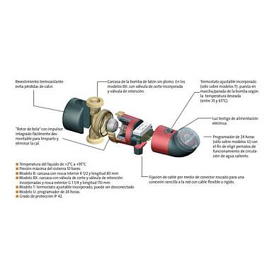 Grundfos UP 20-14 BXUT Циркуляционный насос с теплоизолирующим кожухом, используется в системах горячего водоснабжения и в небольших системах отопления. Насос перекачивает чистые, невязкие и неагрессивные жидкости без волокон и твердых частиц, воду систем горячего водоснабжения и умягченную воду. Двигатель с «мокрым» ротором обеспечивает практически бесшумную работу агрегата. При необходимости насос легко разбирается без снятия корпуса с трубопровода. Специального технического обслуживания не требуется.