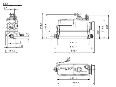 Grundfos Sololift2 CWC-3 Канализационная установка предназначена для отвода сточных вод от навесного унитаза, раковины, писсуара, раковин, душа или душевой кабины установленных ниже уровня канализации. Оснащена измельчителем и может перекачивать жидкость содержащую бумагу и фекалии. Предназначена для монтажа в скрытой стеневой нише за навесным унитазом.