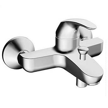 Однорычажный смеситель для ванны. Фиксированный излив. Монтируется на стену. На два отверстия. Наружная установка. Аэратор. Автоматический переключатель ванна/душ. Отвод для душа вниз G1/2. Эксцентричные соединения DN15 (G1/2). Защита от обратного потока для домашнего использования. Поверхность: хром.