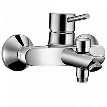 Однорычажный смеситель для ванны. Фиксированный излив Монтируется на стену. На два отверстия. Наружная установка. Аэратор. Автоматический переключатель ванна/душ. Отвод для душа вниз G1/2. Эксцентричные соединения DN15 (G1/2). Защита от обратного потока для домашнего использования. Поверхность: хром.