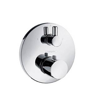 Термостатический смеситель для душа с запорным/переключающим вентилем и цилиндрической рукояткой. Требуется скрытая часть. Монтируется на стену. На одно отверстие. Скрытая установка. В набор входят: рукоятка, гильза, розетка, керамический запорный/переключающий вентиль, термоэлемент. Предустановленное ограничение температуры горячей воды. Картридж MTC. Поверхность: хром.