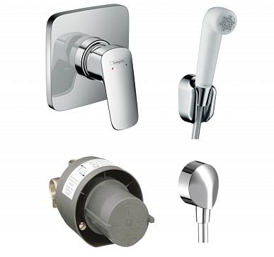 Набор HANSGROHE SetLogisG с гигиеническим душем (71604000 + 13620180 + 27454000 + 32127000) Скрытая часть для однорычажного смесителя 13620180 Керамический картридж. Класс шума: I. Класс расхода воды: C. Смеситель для душа Hansgrohe Logis 71604000 Тип подключения: базовый комплект. Скорость потока при 3 бар: 28,7 л / мин. Минимум рабочее давление: 1 бар. Максимум. рабочее давление: 10 бар. Подключение для душевого шланга Hansgrohe 27454000 Внешня...