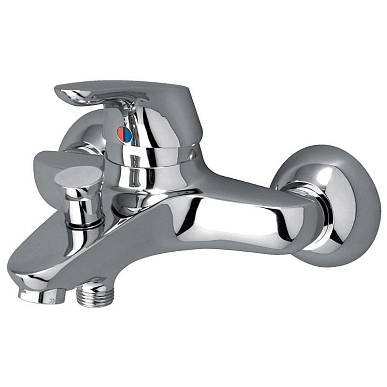 Ideal Standard Cerasprint New однорычажный смеситель для ванны B3743AA Наружная установка. Монтируется на стену на два отверстия. Фиксированный излив. Аэратор. Автоматическое переключение ванна-душ. Латунная рукоятка с индикатором горячей/холодной воды. S-подключение. Поверхность: хром.
