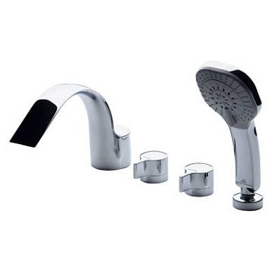Ideal Standard Melange смеситель для ванны (на 4 отверстия) A4293AA Двухвентильный смеситель для ванны с изливом. Наружная установка. Монтируется на край ванны на четыре отверстия. Ручной душ. Фиксированный излив. Гайки 1/2" для установки на бортик с системой герметизации соединений. Затворы на керамических дисках G1/2 90°. Скрытый аэратор «CACHE» M21,5x1 - D. С душевым набором: 4-функциональная душевая лейка, шланг 1500 мм. Металли...