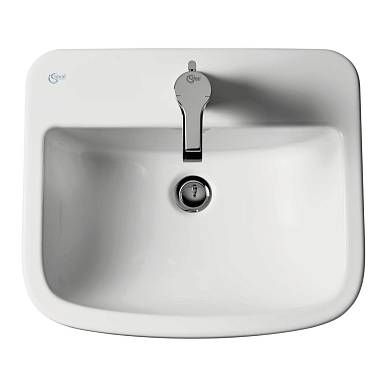 Высококлассная сантехника Ideal Standard производится во всех странах ЕС. Размеры - 50х43х18 см, Современный стиль Крепление к столешнице. Одно отверстие для смесителя посередине.