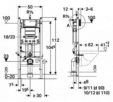 Для унитазов с межосевым расстоянием под крепежные шпильки 18 см или 23 см