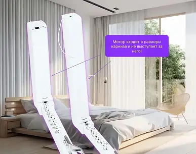 Встроенный электропривод обеспечивает плавное и тихое движение штор, а размеры карниза (3500х50х30мм) и мощный мотор (225х50х70мм) делают его идеальным для широких оконных проемов или комнат различного размера. Независимо от условий в вашем доме, этот умный карниз работает в широком диапазоне рабочих температур от -5 до +50 °С.