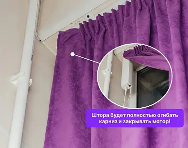 • Размер мотора 225х50х70мм, он питается от розетки 220в и вставляется С ЛЮБОЙ СТОРОНЫ карниза! Ширина и высота карниза по 3см вместе с крючками. Ширина карниза с потолочными креплениями 5см. Крючки на резиновых колёсиках с металлическими кольцами, ездят по карнизу тихо! Мотор тоже работает очень тихо, ничего не шумит.