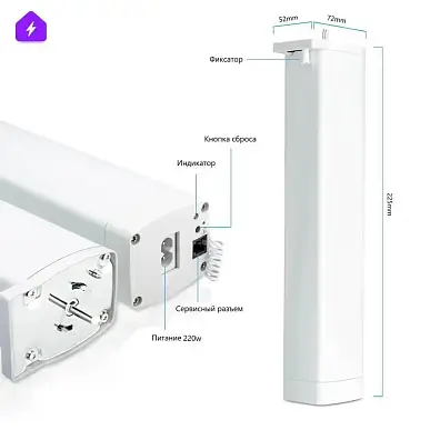 Встроенный электропривод обеспечивает плавное и тихое движение штор, а размеры карниза (3000х50х30мм) и мощный мотор (225х50х70мм) делают его идеальным для широких оконных проемов или комнат различного размера. Независимо от условий в вашем доме, этот умный карниз работает в широком диапазоне рабочих температур от -5 до +50 °С.