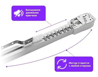 Встроенный электропривод обеспечивает плавное и тихое движение штор, а размеры карниза (4000х50х30мм) и мощный мотор (225х50х70мм) делают его идеальным для широких оконных проемов или комнат различного размера. Независимо от условий в вашем доме, этот умный карниз работает в широком диапазоне рабочих температур от -5 до +50 °С.